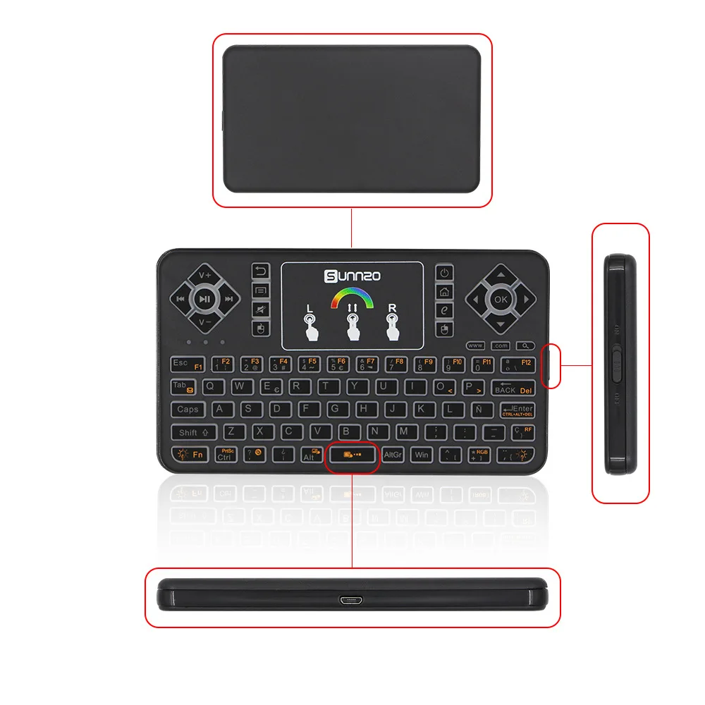 BEST Colorful backlight Mini 2.4GHz Wireless Keyboard Multi-functional Keyboard Touchpad Fly Air Mouse F