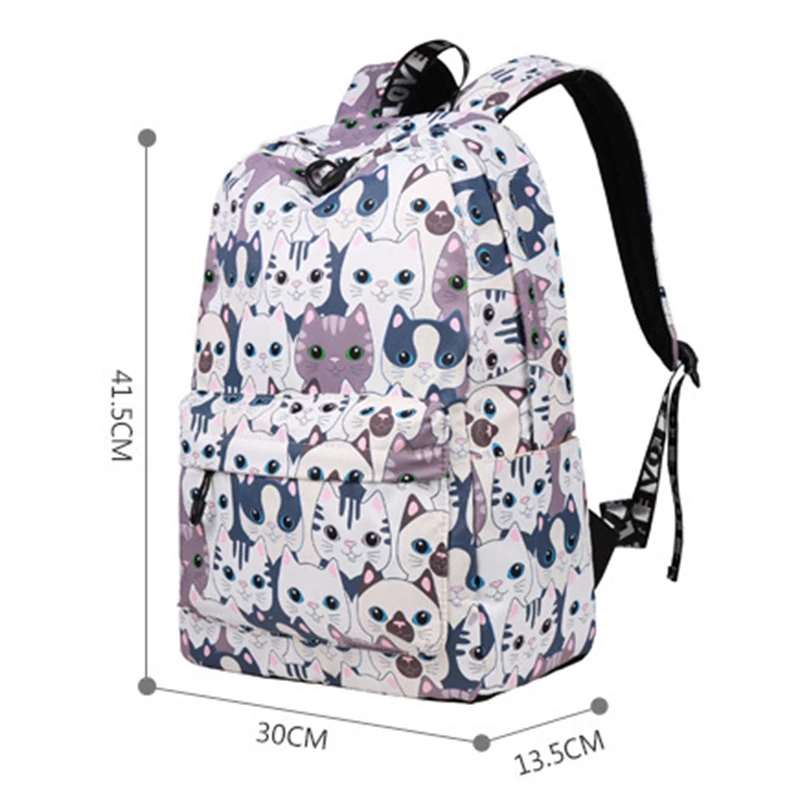 Waterproof Cat Printing Backpack Women School Students Back Pack Female 14-15.6 Inch Laptop Cute Bo