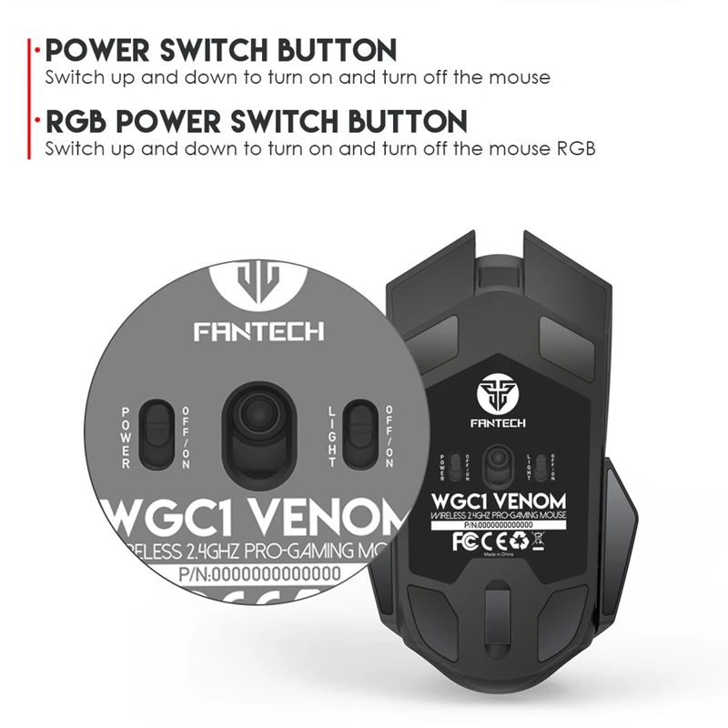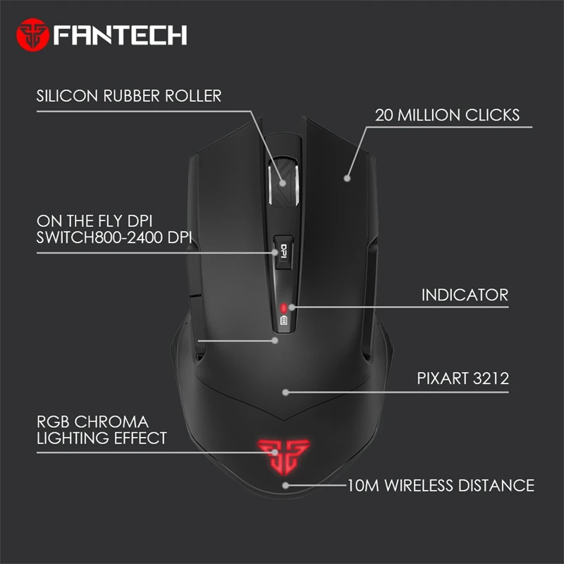 Hot Sale FANTECH WGC1 2.4G Wireless Mouse Charging Mute Gaming Computer Mouse Eergonomic RGB Mouse for Offic